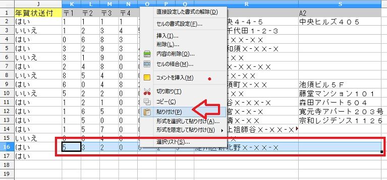 操作4: セルK17を選択して、右クリックして、貼り付けをクリックです、赤矢印