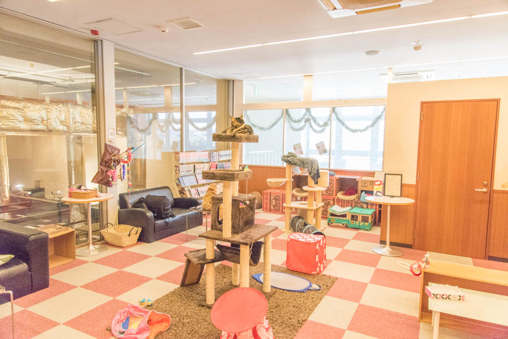 こちらはカフェの中に猫スペースがある珍しいタイプになります。