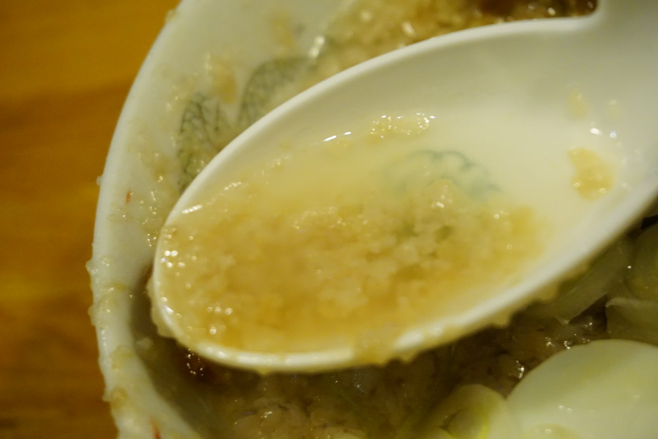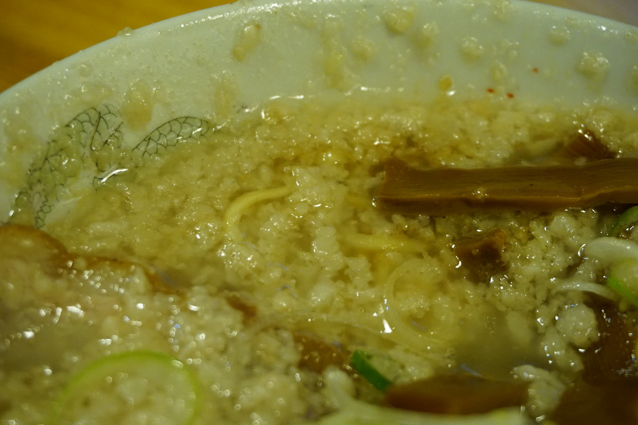 どんぶりの端にこびっりつく背脂は背脂ちゃっちゃ系ラーメンの証。