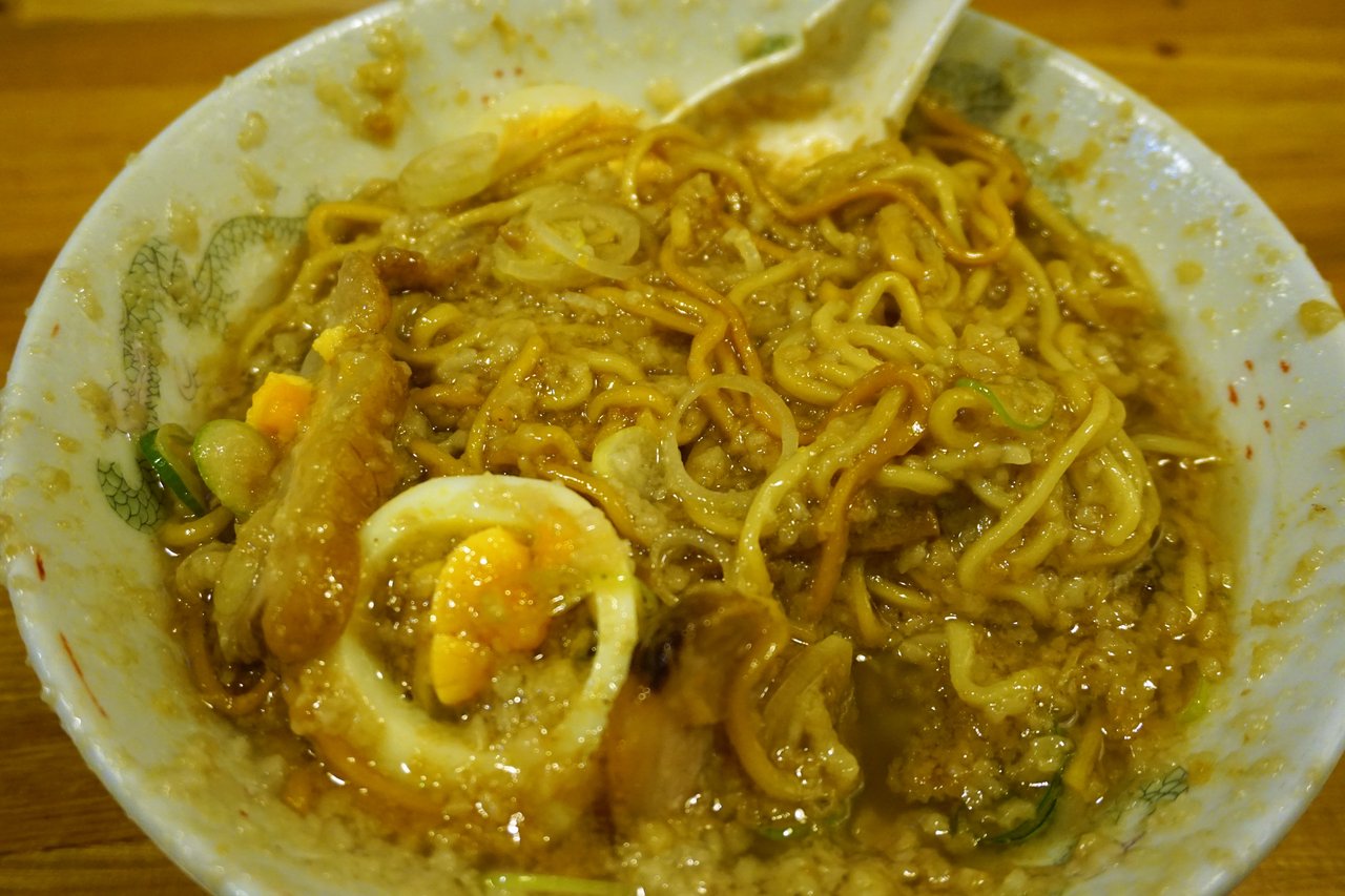ここら辺の食べ方は油そばと同じ気がする。見た目は悪いけどこれがまた美味いんだよなぁ。