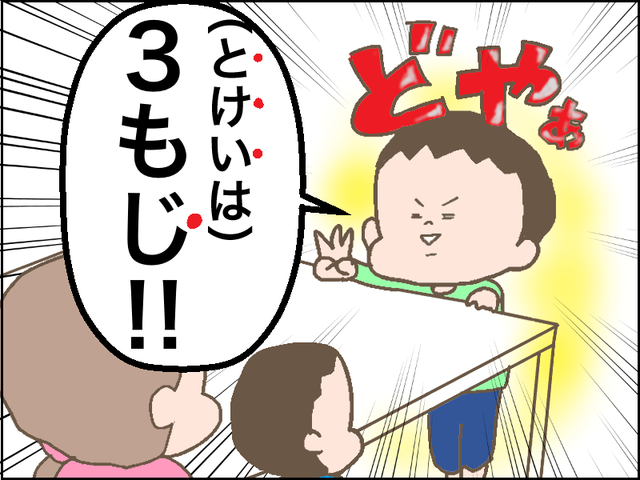あわよくば時計が読めるようにならないかと思ったけど、まだ1時や2時のちょうどの時間しかわかりません(^_^;)