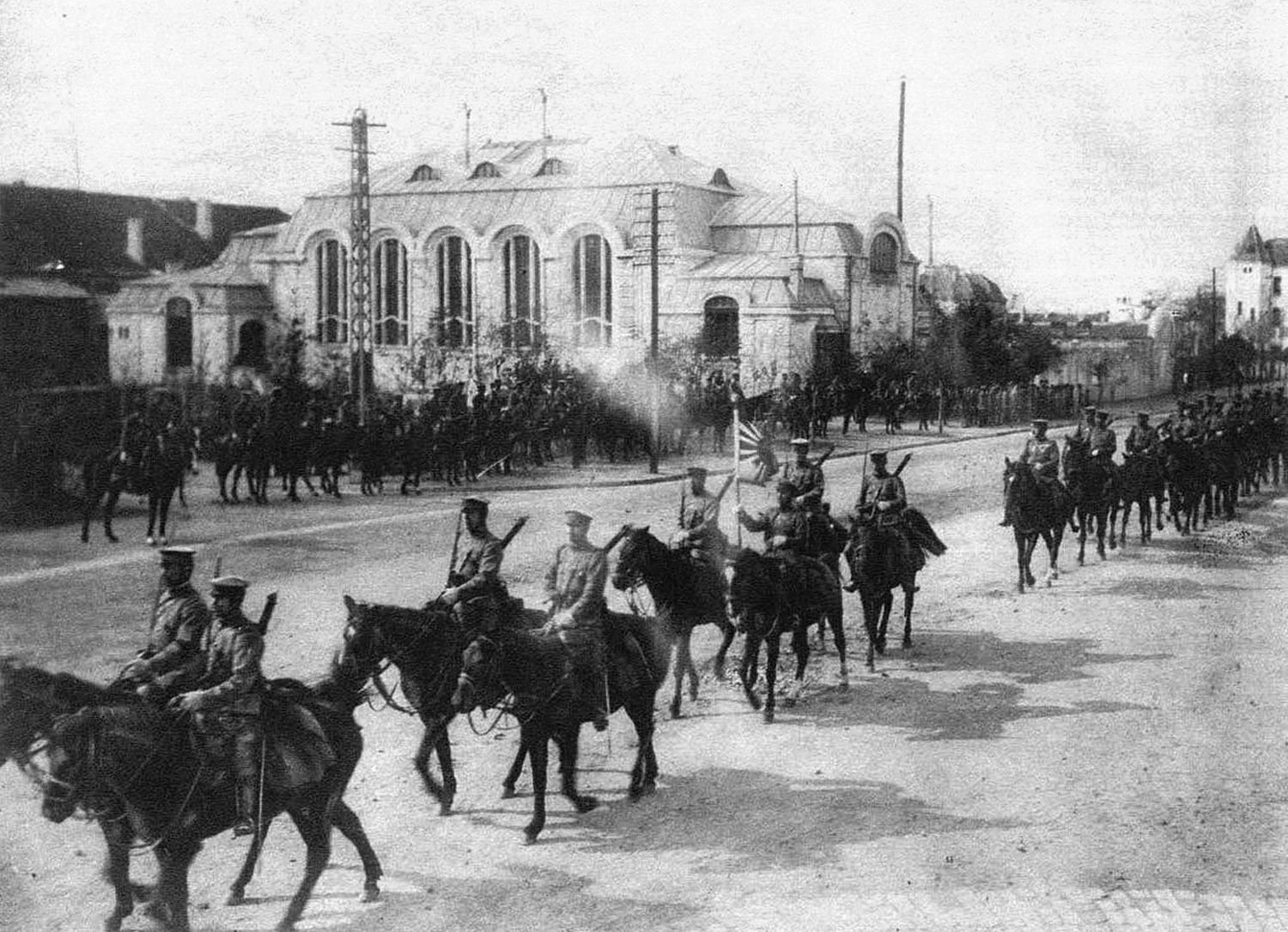 写真は3国協商のもとベルリンから派兵されるドイツ兵に花を渡す女性。