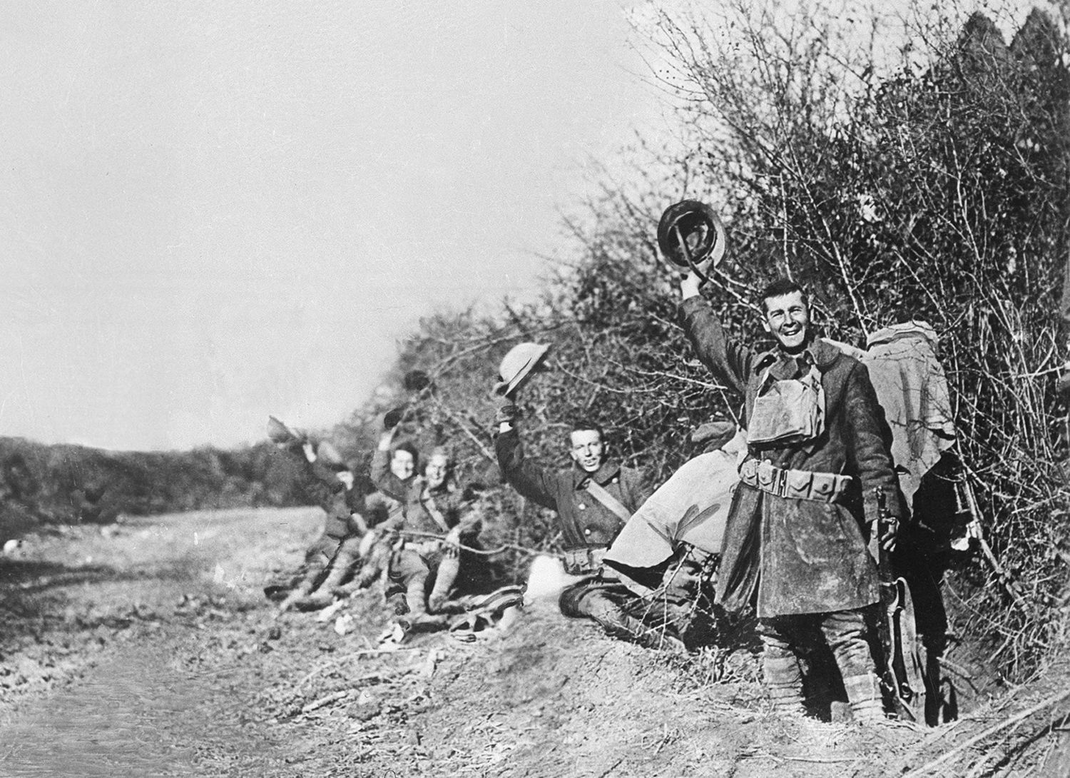 1918年11月11日中欧同盟の脱落を皮切りに弱体化したドイツが革命により共和国へ、度重なる休戦協定の末ドイツの降伏という形で戦闘が終了。