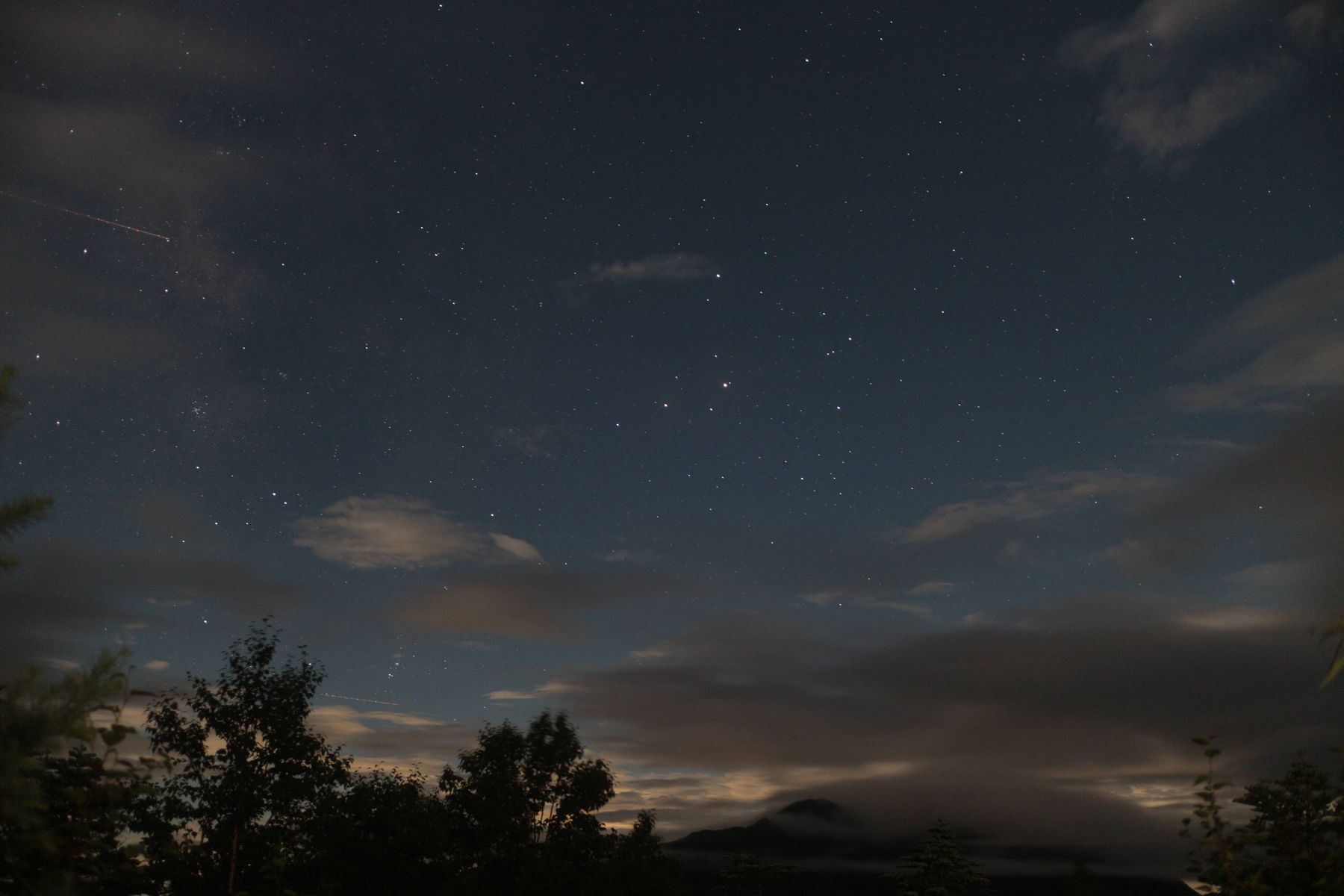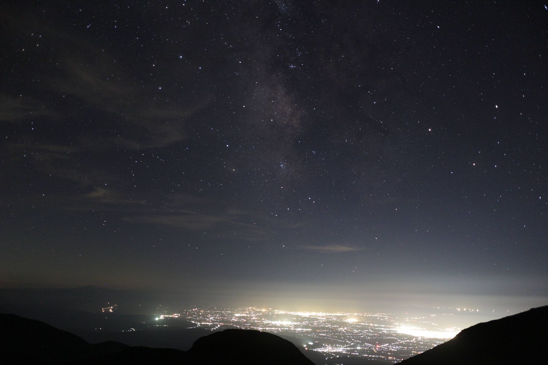 酒田(山形県)の夜景と天の川。