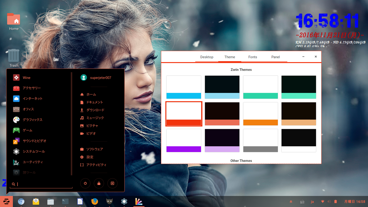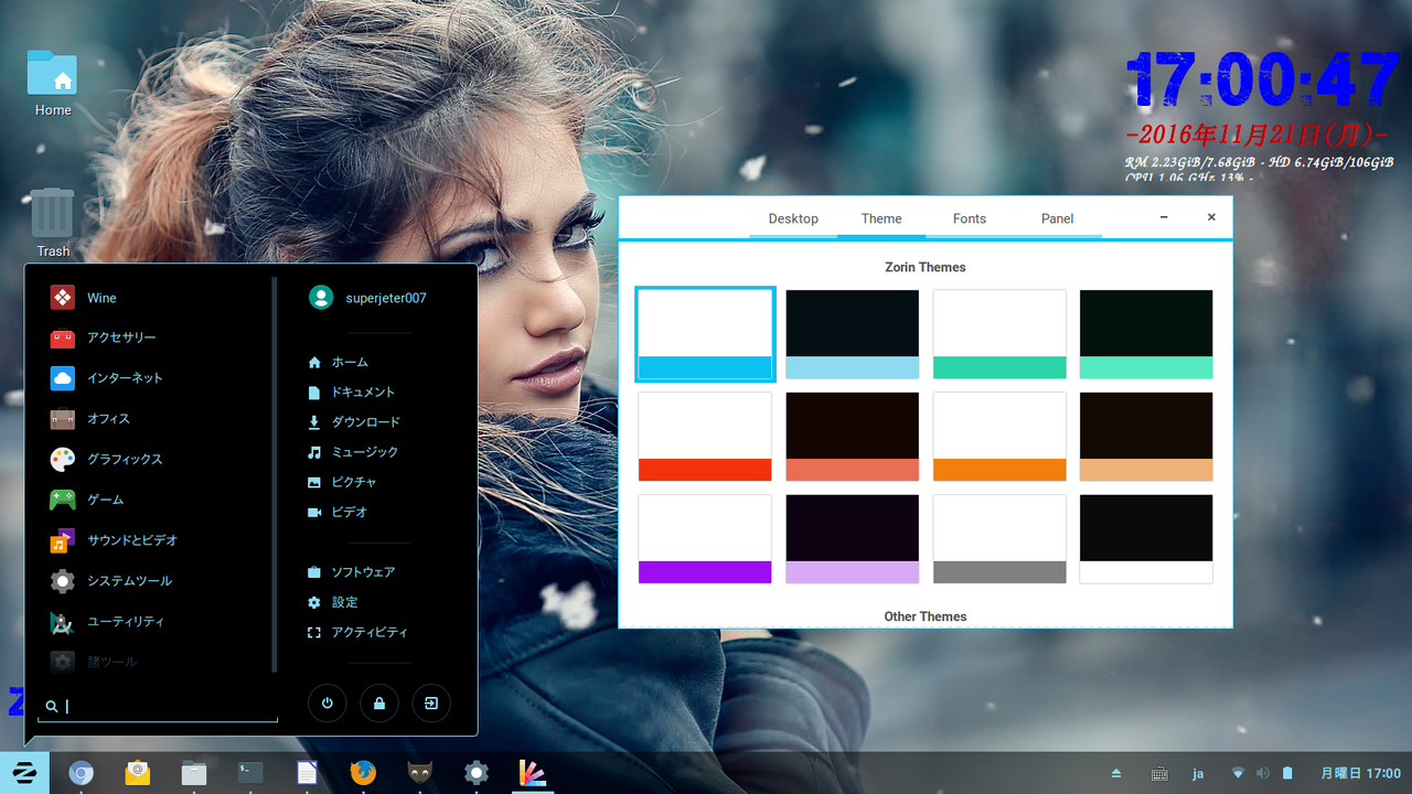 比較的カスタマイズができないタイプで・・日本語化プロセスの平易性を見た場合、elementaryのほうが上。日本語化後の品質を見た場合、Budgieのほうが上。次にZorinですが・・
