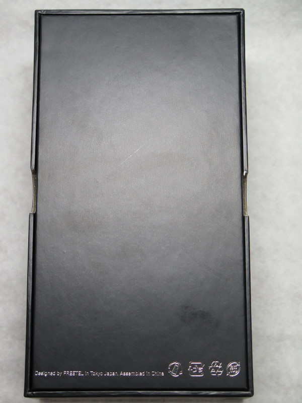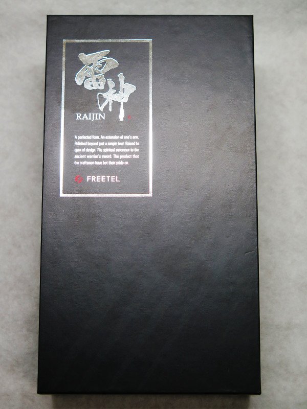 FREETELでは人気となった「FREETEL SAMURAI MIYABI」以降、おおよそ統一されているFREETEL製品の個装箱ですが、今回のRAIJINもそれに沿ったものとなっています。