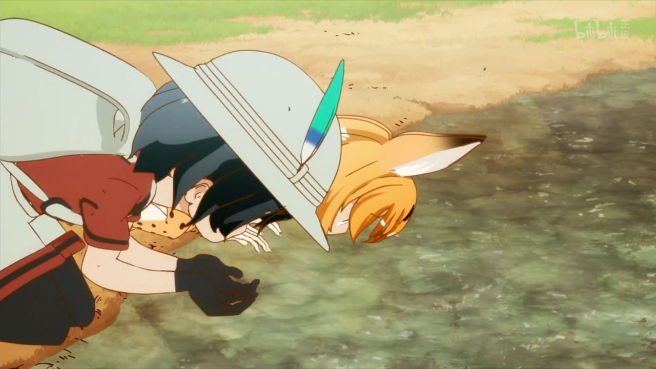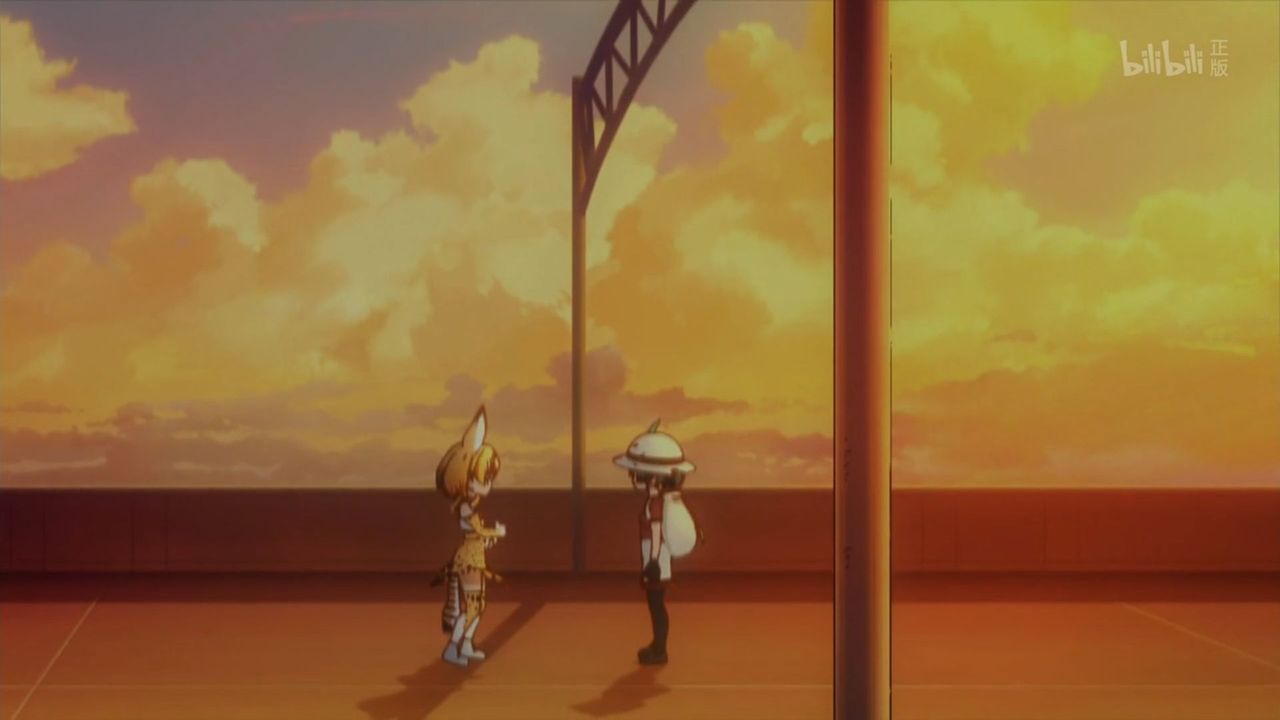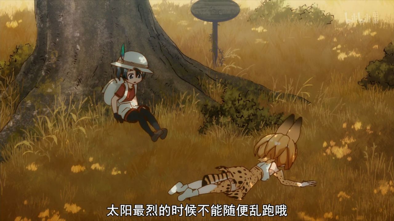 なんとなく、とても寂しい話に見える。ボロボロの標識、パークはすでに廃棄されて久しい。女の子になった野生の動物たちは遺伝子技術をいたずらにつかったせいか。記憶を失くした人間がAIに保護されたサファリパークで自分を探す。まるでアポカリプスの後に人間が再びアフリカから出ていくような感じだ。 このアニメは三話で首がとんだりしないよな?