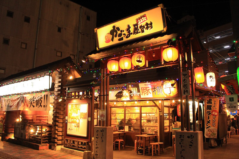 すこし飲んで帰りたいときは、駅近くの屋台村へ。24:00まで営業しており、焼酎1杯200円からとリーズナブルです。