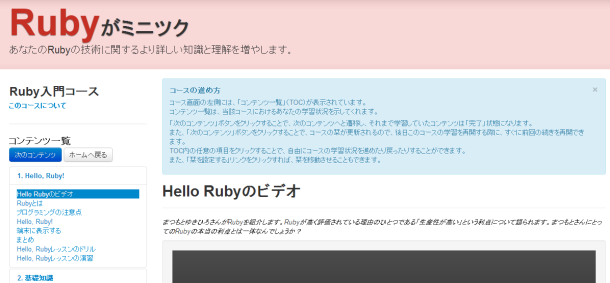 Ruby、Railsを身につけたいという人にピッタリなサービスがこちらのミニツクというサービスです。Ruby作者も携わった良質なサイト・サービスとして有名です。