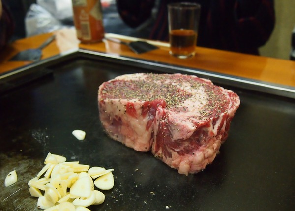 焼きあがるまでの待ち時間、ニンニクをいじくって、いい塩梅にしあげておくのが客の役目。ニンニクと肉の焼ける匂いが食欲をそそってたまらない気持ちになりますが、肉はおさわり厳禁です。