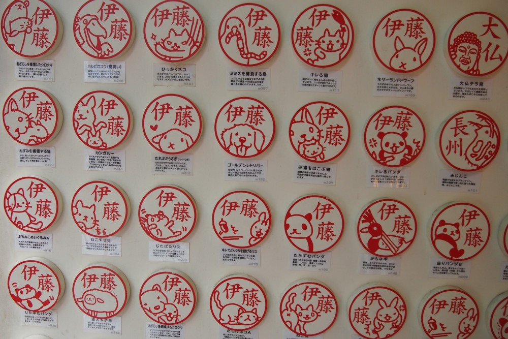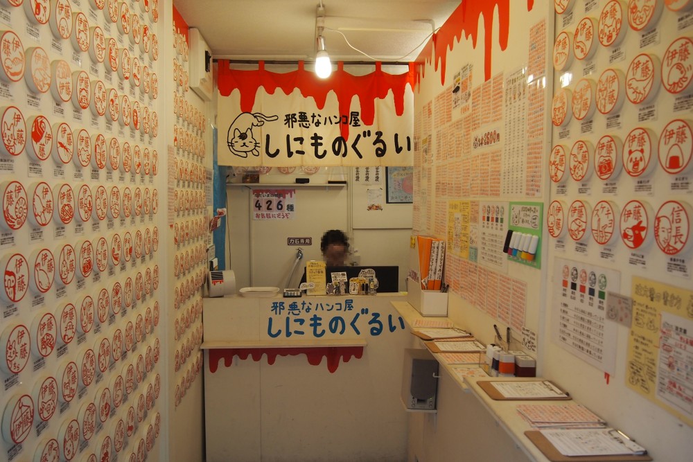 谷中銀座にある「邪悪なハンコ屋さん しにものぐるい」では、ゆるくてかわいいイラストつきのハンコを買えます。