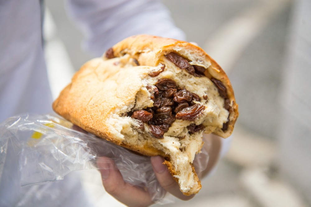 パン生地よりもぶどうのほうが多いんじゃないかってぐらい、ぎっしりぶどうが入っていて、注意しないとぽろぽろこぼれ落ちてしまいます。