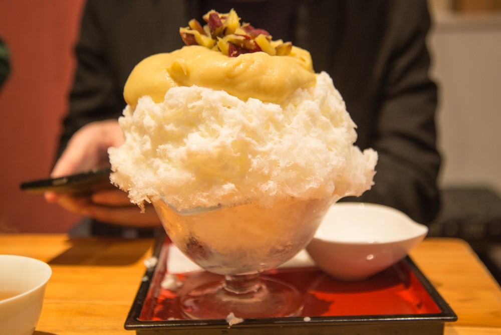 さつまいもクリームキャラメルは1,000円。「かき氷で1,000円!? 高っ」と思われるかもしれませんが、ぜひぜひ一度食べてみてください。かき氷の概念が崩れさります。