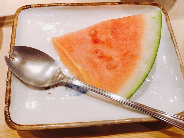 23. デザートにスイカが。