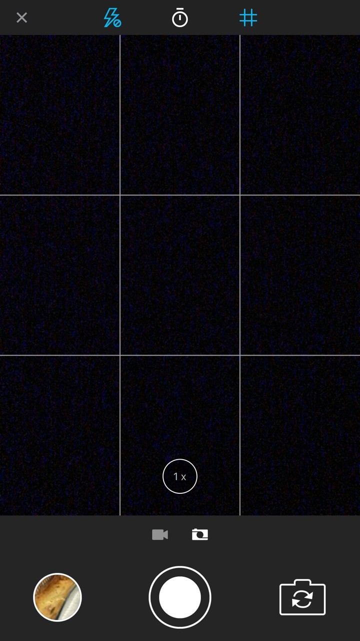 またフラッシュがオンのときにはフラッシュアイコンが表示され、フラッシュアイコンを押しても同様にフラッシュやグリッドなどの設定が行えるようになっています。なお、最新のバージョン1.0.28の変更点は以下の通り。