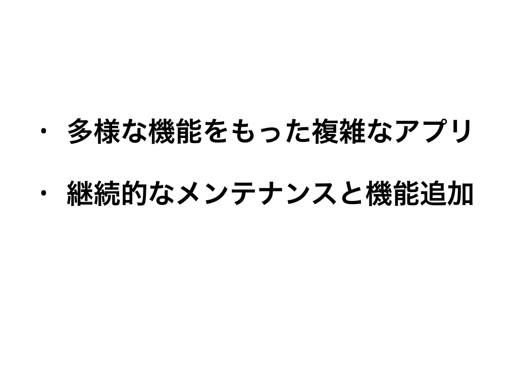 どうすれば、複数人で複雑なアプリを継続的に、安定して素早く開発していけるのか。