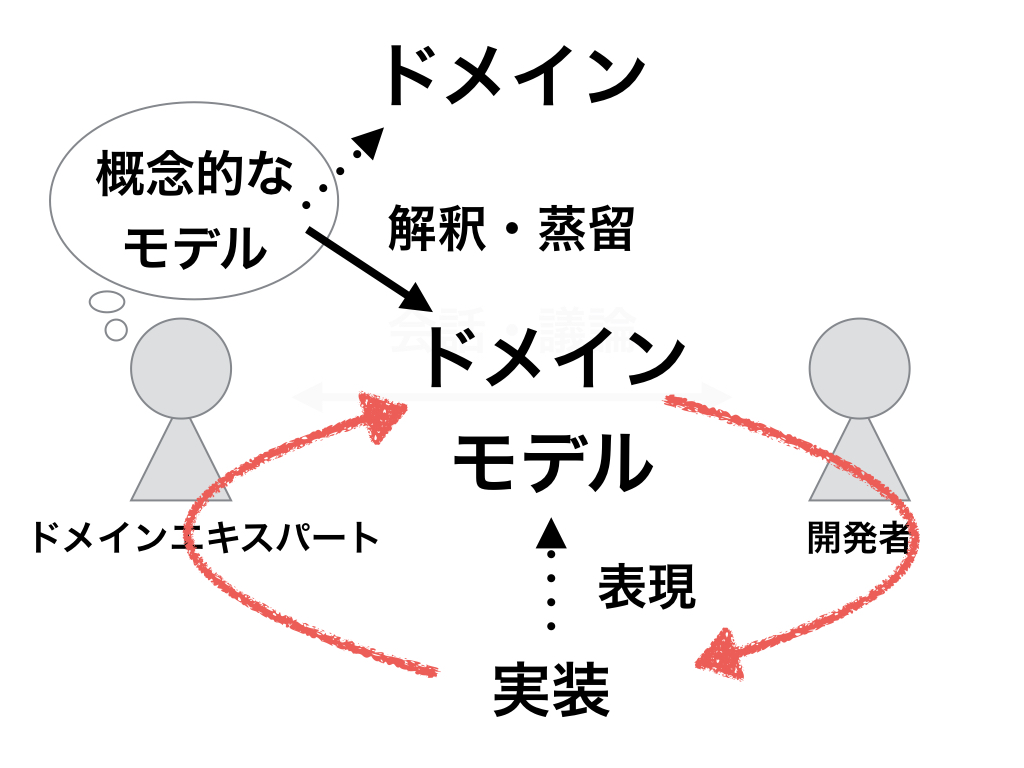 そして、作ったドメインモデルを正確に表現するようコードを実装し、これを繰り返します。