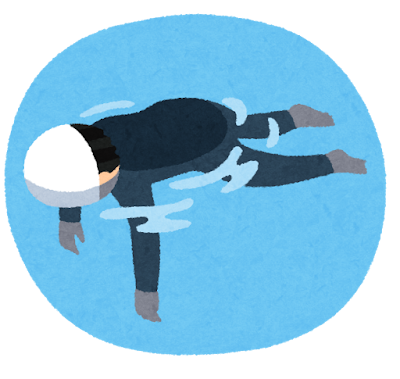 フリーダイビングの一種でどれだけ長くプールにうつ伏せに浮かんだ状態でいれるかを競うスタティックアプネアのイラストです。