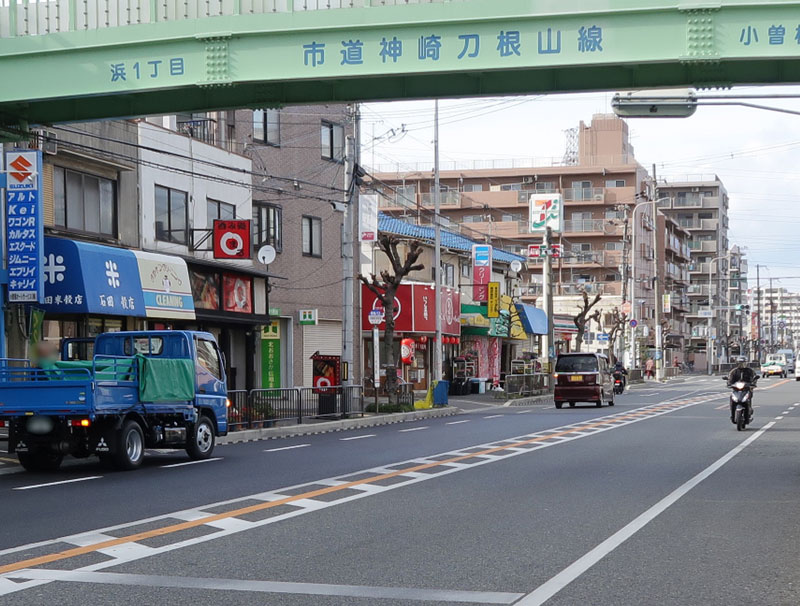 道路の西側にあるお店の並びは
