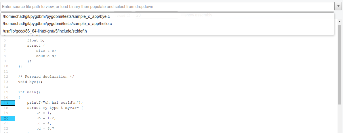 See https://github.com/cs01/gdbgui/tree/master/examples