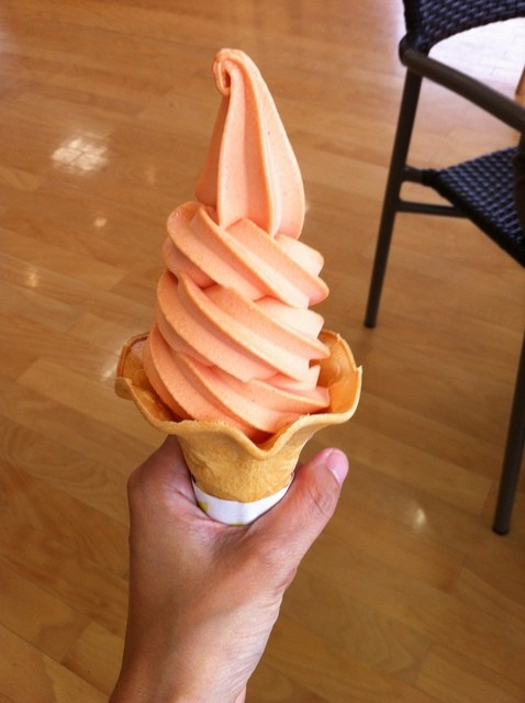トマトジュースのような青臭さもなく、さっぱりしたトマトっぽいソフトクリーム。