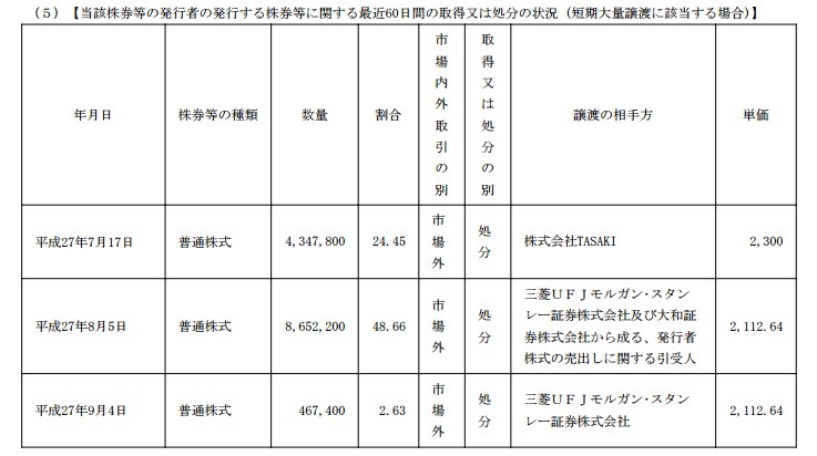 ・TASAKIが自社株買い&公募売り出しを実施、筆頭株主のMBKパートナーズが株を換金(2015年7月~) ←錬金術1往復