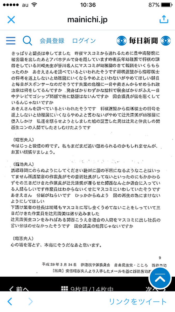 以下、入手したスクショ(毎日新聞が公開したとされるもの)を公開する。
