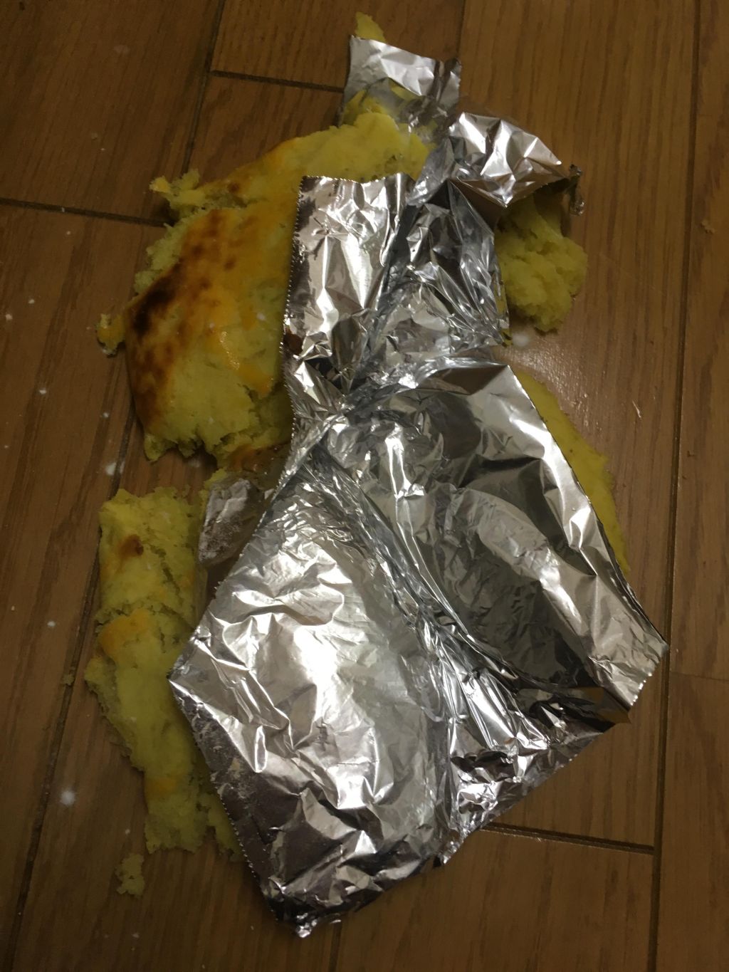 アルミホイルに乗せて焼いたからそれ取り出そうと思ったんやけどアルミホイル柔らかいから落とした
