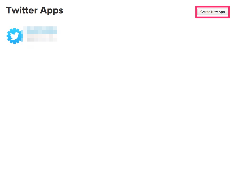 サーバが出来たらTwitterと結びます。TwitterのAppsページを開き、新規にアプリを作成します。