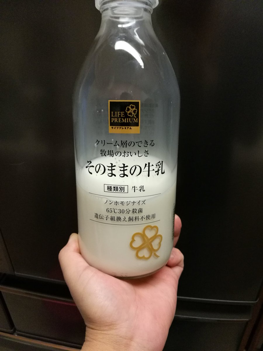 これなんですけど、あまり処理してないせいでやや足が早いんですけど、美味しくてグビグビ飲んであっと言う間になくなります。値段も900ml298円でそこまで高くなく。表面にクリーム層ができる本当に美味しい牛乳です。 pic.twitter.com/gejEJ2pQjk