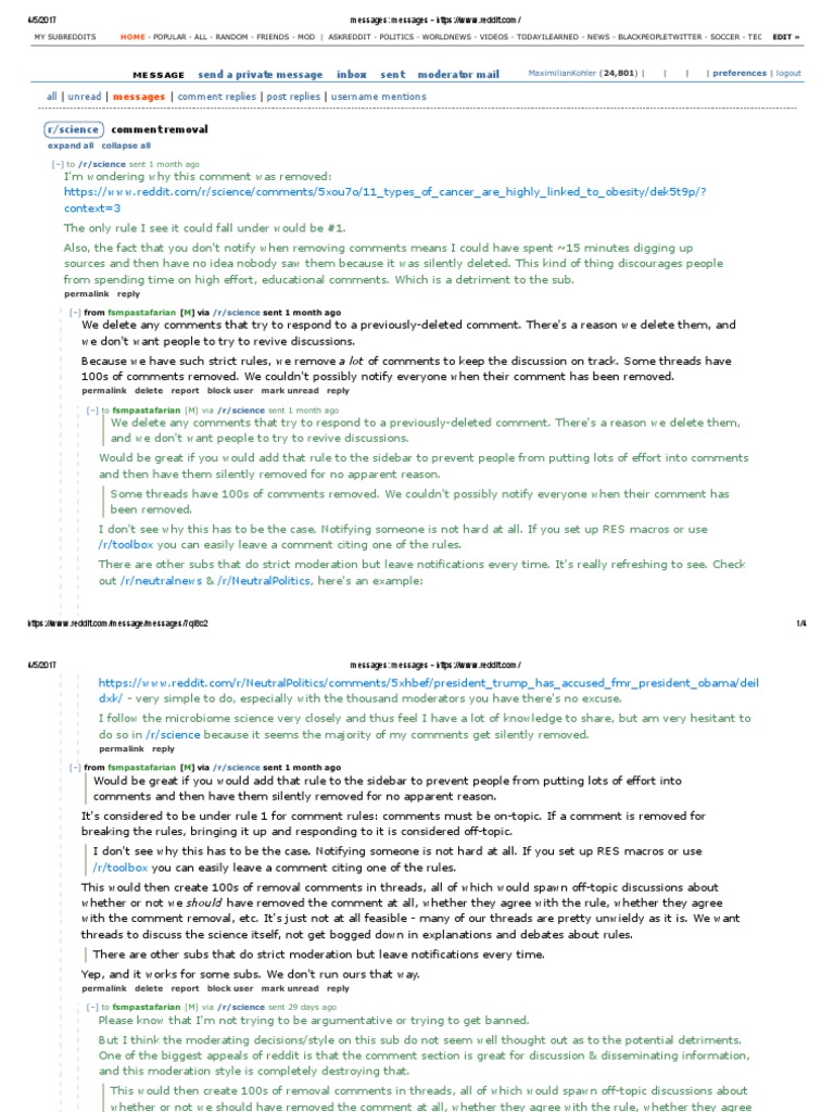 https://www.reddit.com/r/NeutralPolitics/comments/5xhbef/president_trump_has_accused_fmr_president_obama/deildxk/ - very simple to do, especially with the thousand moderators you have there's no excuse.I follow the microbiome science very closely and thus feel I have a lot of knowledge to share, but am very hesitant todo so in /r/science because it seems the majority of my comments get silently removed.