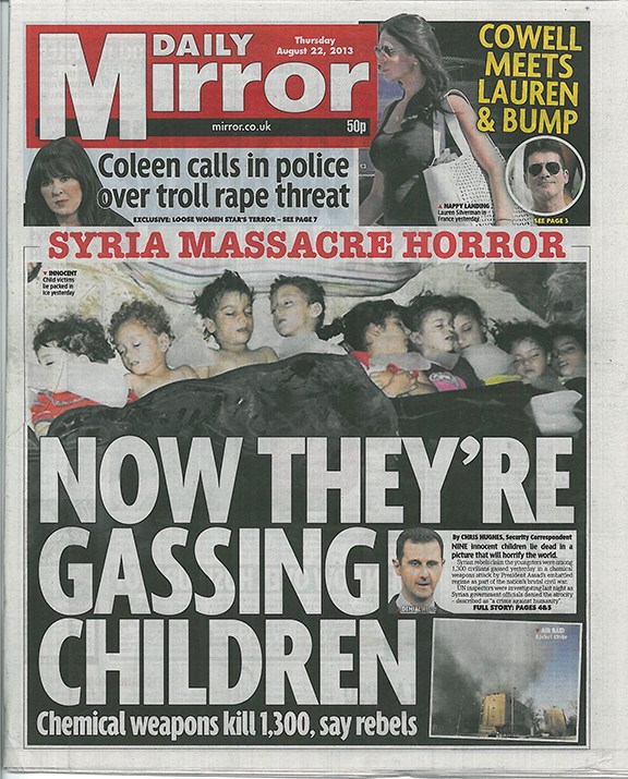 Valtamedian sotapropaganda Syyriaa vastaan on ollut järjestelmällistä koko sisällissodan ajan, vaikka viime vuosina Bashar al-Assadin sotamenestys onkin saanut monet päätoimittajat jo luopumaan toivostaan ja lakaisemaan koko epäonnistuneen sodan maton alle.