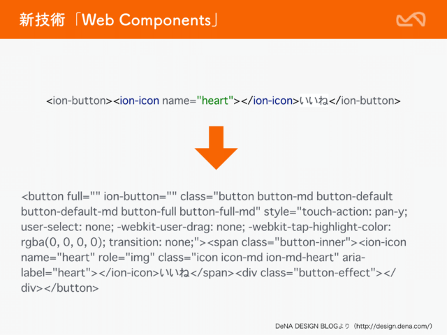 こうした問題を抜本的に解決すべく、標準技術として提案されているのがWeb Componentsです。 Web Componentsは、端的にいうと自作のタグを作れる技術です。