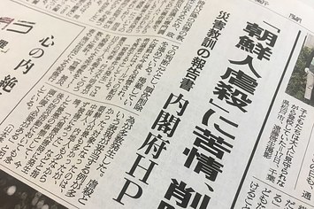 朝日新聞が4月19日の朝刊で報じた「『朝鮮人虐殺』に苦情、削除/災害教訓の報告書 内閣府HP」という記事に注目が集まっている。