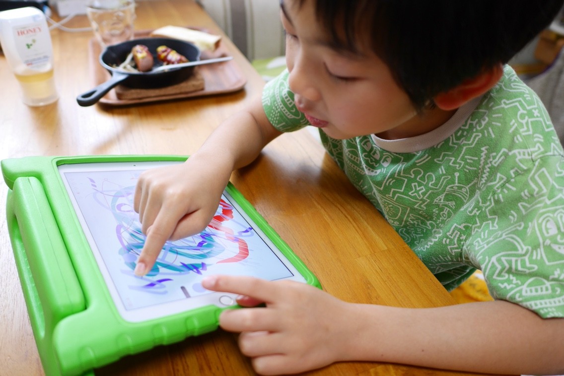 ベクターを覚えさせるチャーンス!と「こんな絵をiPadでスイスイ描けるアプリあるよ!使ってみる?」と誘ったら「うん!やってみたい!」と反応!しめしめ!