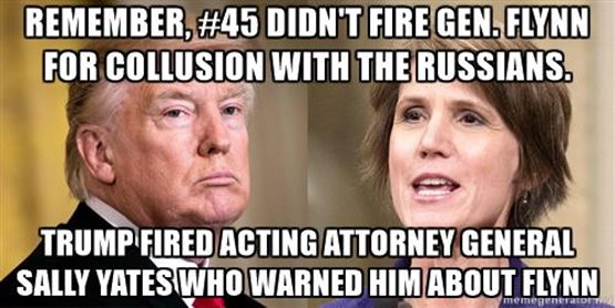 You’ll remember that Yates told the Trump administration A LONG TIME AGO that disgraced former national security adviser Michael Flynn was a foreign agent from ForeignTown, which made them very sad, because the folks squatting in the White House right now wish to be free to collude with Russia and destroy America in peace. So it’ll be fun to see what all they do to keep her from testifying this time. Will they order one million pizzas to her house and stack them up outside her front door so she can’t get out? PROBABLY.