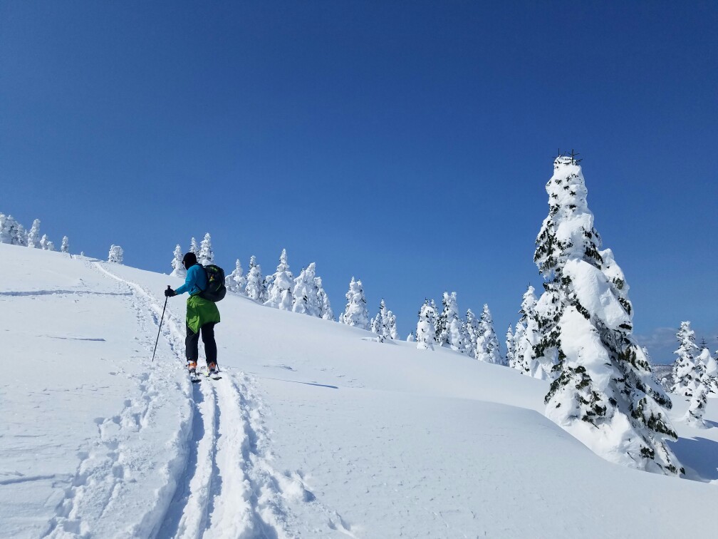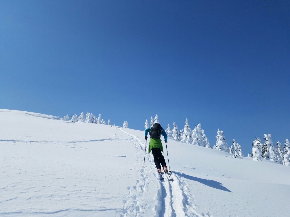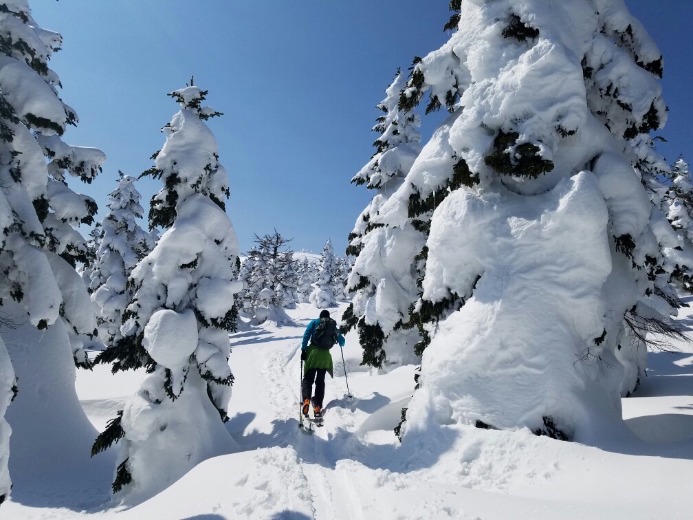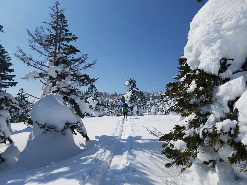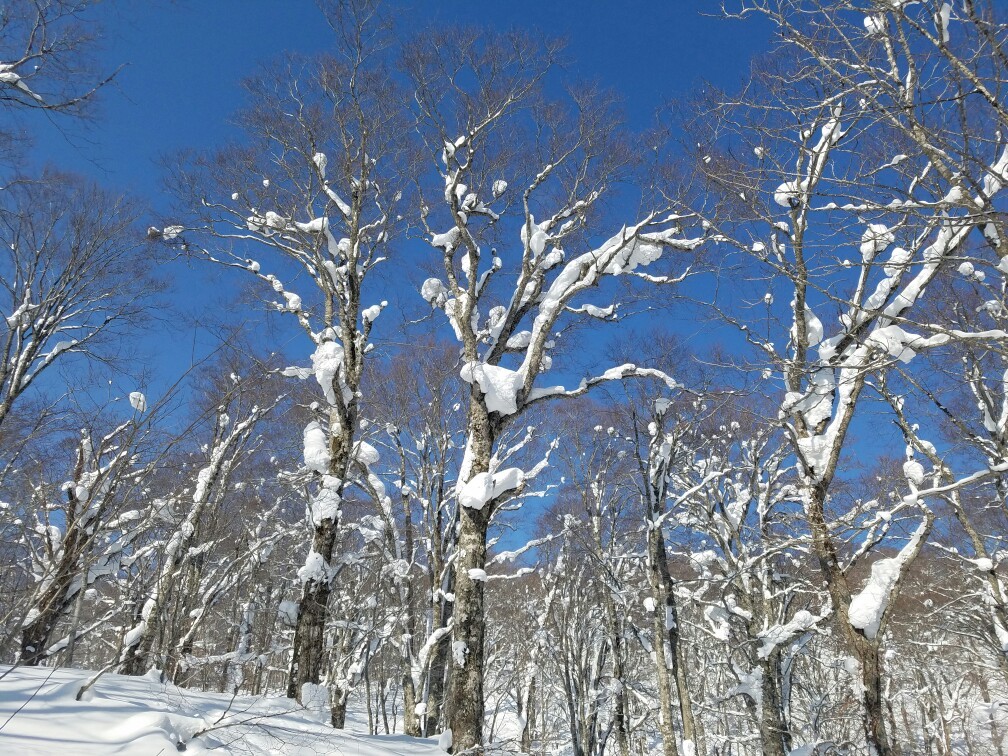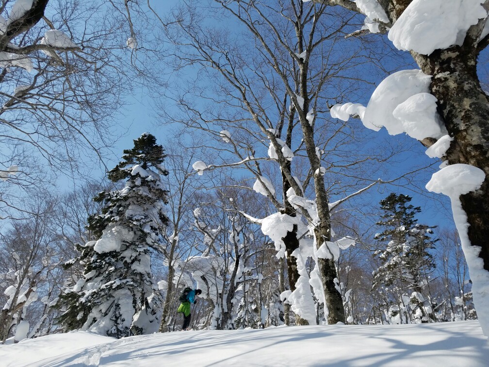 栂森は傾斜が緩くて、私にも滑れた。やっぱり、BCはやめられない。ツリーランが気持ちいいのだ。