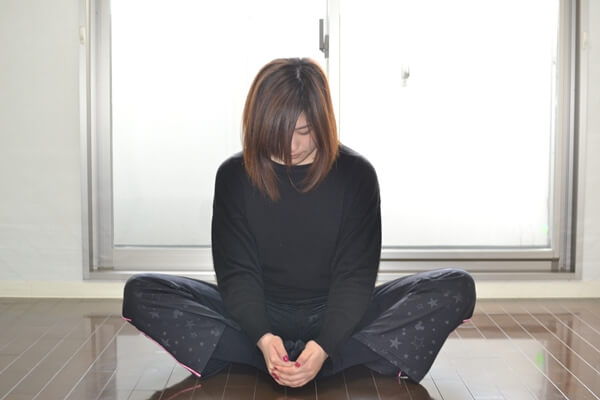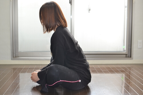 1.あぐらをかくようにして座ります。