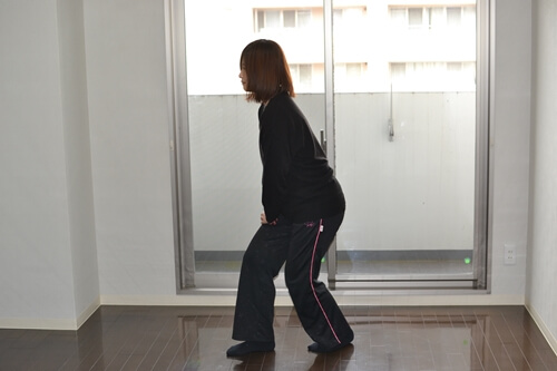 2.しゃがむように両ひざを曲げます。