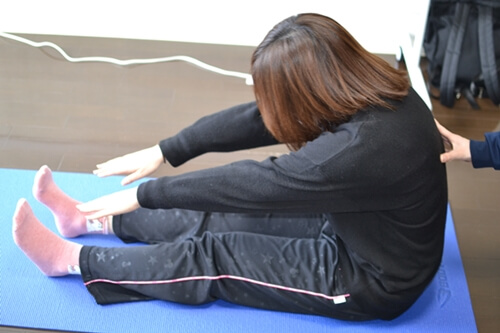 3.背筋を伸ばしながら上体を前へゆっくり倒しながら30秒キープします。