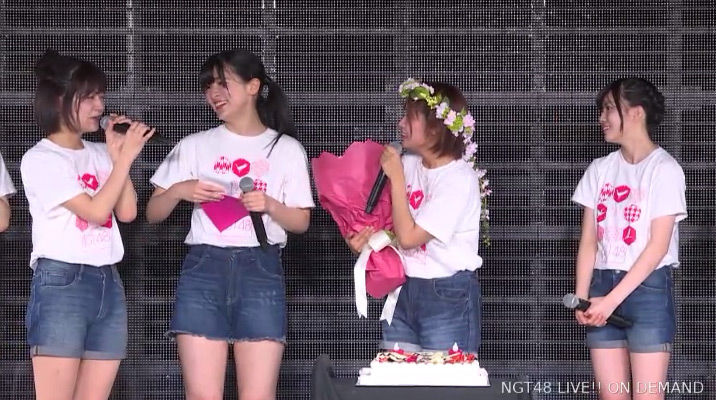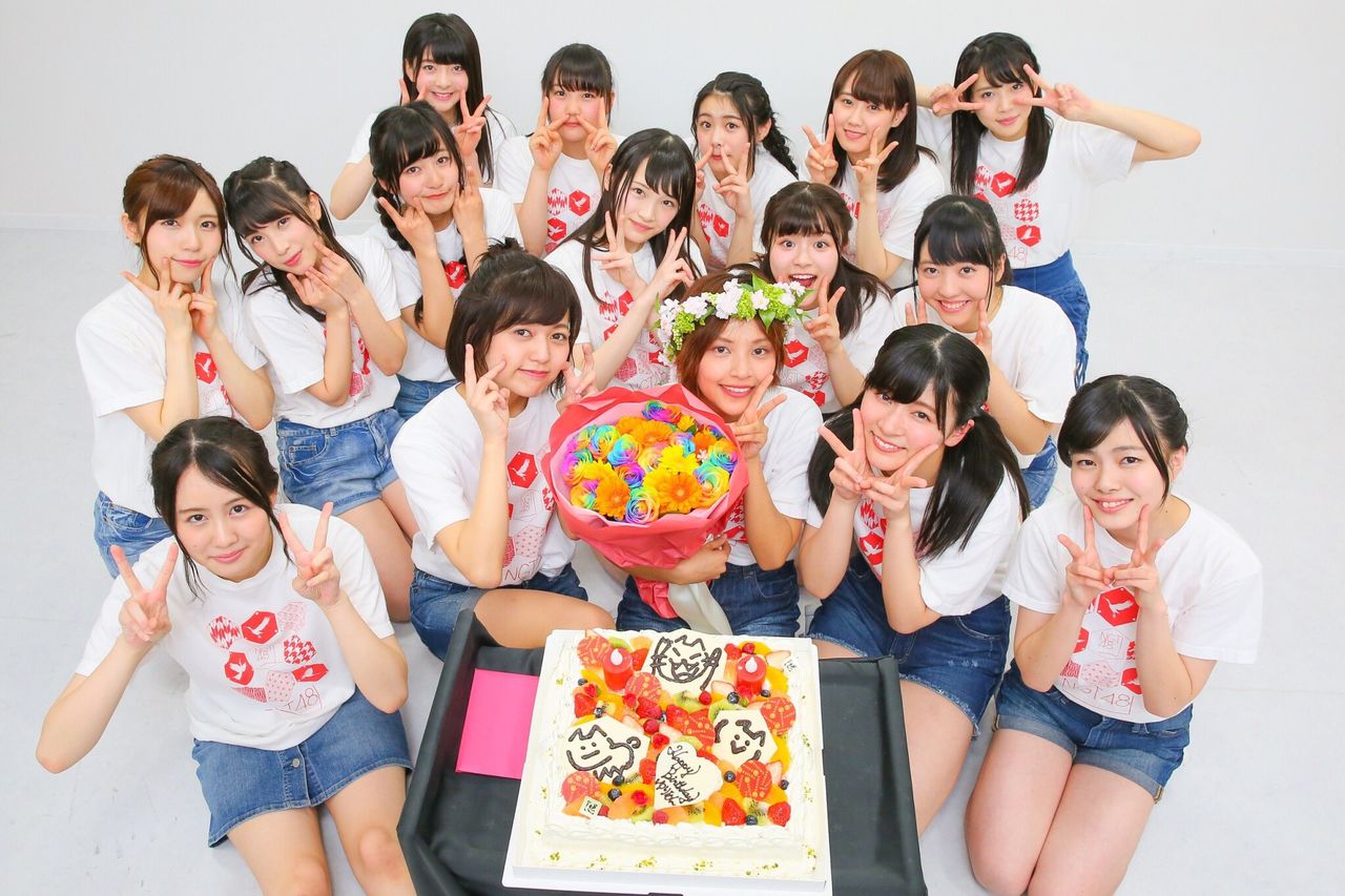 ちなみに、「生誕ケーキの前に誰よりも早く陣取るもふちゃん(村雲颯香)」もお決まり。#NGT48 pic.twitter.com/cCR2Bm8juI