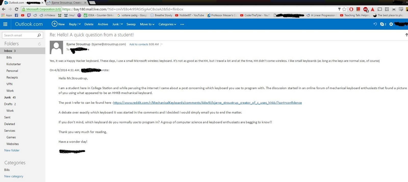C++を作ったデンマーク人の数学者ビャーネ・ストロヴストルップ(wikipedia)が日本の株式会社PFUが作っているPC用キーボードのハッピーハッキングキーボード(wikipedia)を使っていると紹介されていました。