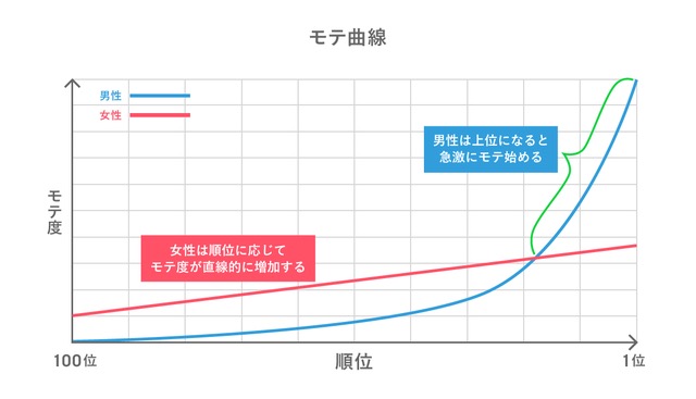 メスは群がるところに群がる生き物で、であるからこそヒトのモテ曲線は男女で異なる。