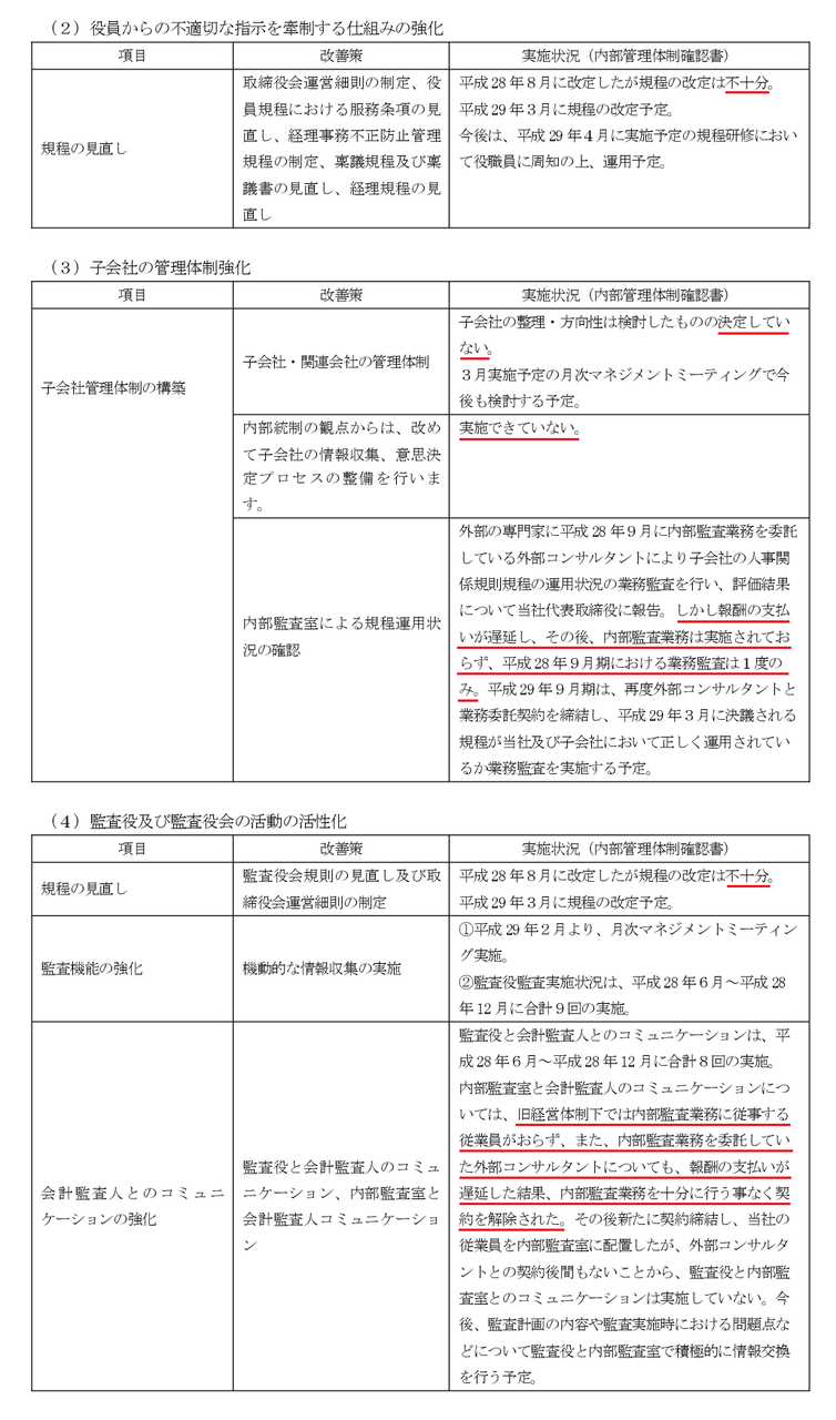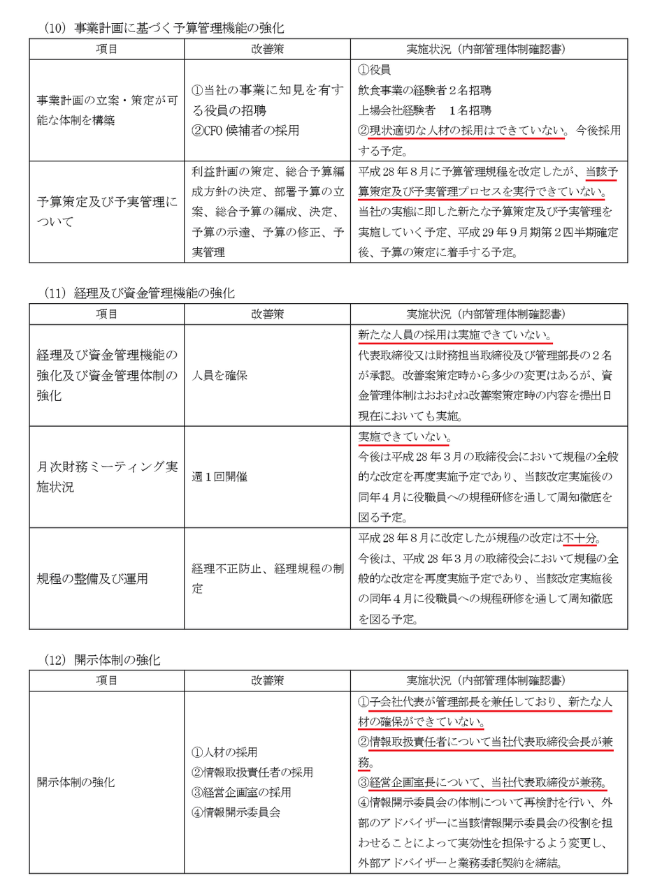 ※改善の見込みがないと判断された(まるでもう諦めたような)内部管理体制確認書の中身