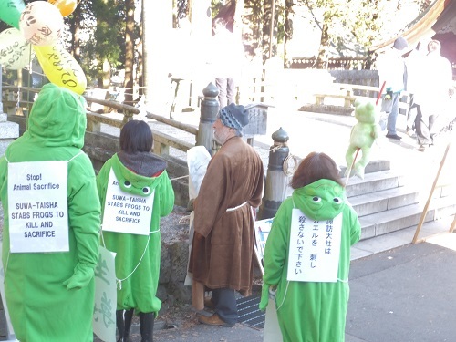 今朝の諏訪大社・蛙狩神事に、愛護団体による妨害が入ったと友人からメール。愛護しているから狩ることが解らぬようだ。たとえばキリスト教における象徴的な蛇殺しが蛇崇拝に基づくものだとも解らぬのだろう。 pic.twitter.com/KUw6PszhhP