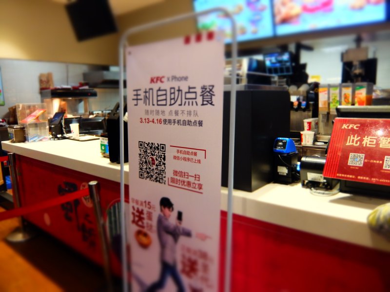 奥地雲南省昆明でもKFCでスマホ注文推進、現金注文レーンはひとつだけに。スマホが使えないと生きていけないお・・・ pic.twitter.com/cLk1K2BmNq