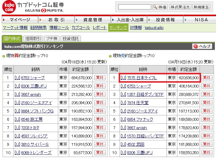 カブドットコム証券で日本ライフライン6億の売り。これができるのはあの人しかいない!! pic.twitter.com/jy2yxHKVTn