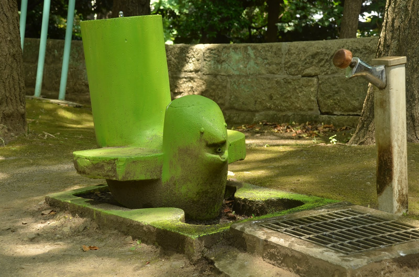 | 土の部分は、ご覧のように木陰に。掃除のお兄さんによると、ほぼ1日中こういう感じらしいです。 |
