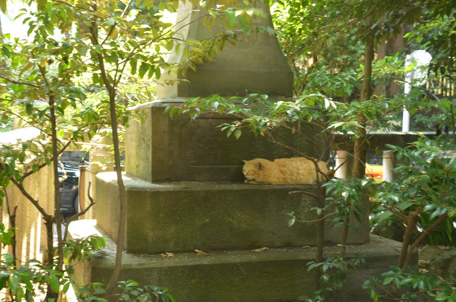 | 石灯籠で昼寝する猫。お決まりの絵ですね |