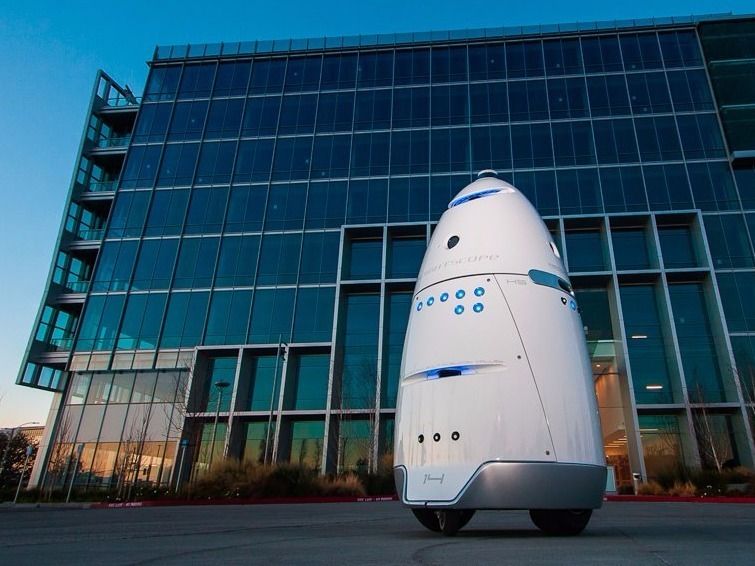 Knightscope¼Ò¤Ï¡¢±Ç²è¥¹¥¿¡¼¡¦¥¦¥©¡¼¥º¤ËÅо줹¤ë¡ÖR2-D2¡×¤Ë»÷¤¿¥í¥Ü¥Ã¥È¤òÀ½Â¤¤·¤Æ¤¤¤ë¡£Æ±¼Ò¤ÎºÇ¤âÍ̾¤Ê¥Þ¥·¥ó¤Ç¤¢¤ë¡ÖK5¡×¤Ï¡¢¹â¤µ5¥Õ¥£¡¼¥È¡ÊÌó1.5¥á¡¼¥È¥ë¡Ë¡¢½Å¤µ300¥Ý¥ó¥É¡ÊÌó136¥¥í¥°¥é¥à¡Ë¤Î·ÙÈ÷¥í¥Ü¥Ã¥È¡£¥«¥á¥é¤Ç¤½¤Î¾ì¤ò¥¹¥¥ã¥ó¤·¤Ê¤¬¤é¡¢´ë¶È¤ÎÉßÃϤ䥷¥ç¥Ã¥Ô¥ó¥°¥â¡¼¥ë¤ò¥Ñ¥È¥í¡¼¥ë¤·¡¢°Û¾ï¤¬¤¢¤ì¤ÐÄÌÊ󤹤롣ºÇ½é¤Ë¤³¤Î»ö·ï¤òÅÁ¤¨¤¿ABC7¤Ë¤è¤ë¤È¡¢½±¤ï¤ì¤¿¥í¥Ü¥Ã¥È¤Ï¤³¤ÎK5¤À¤Ã¤¿¤È¤¤¤¦¡£